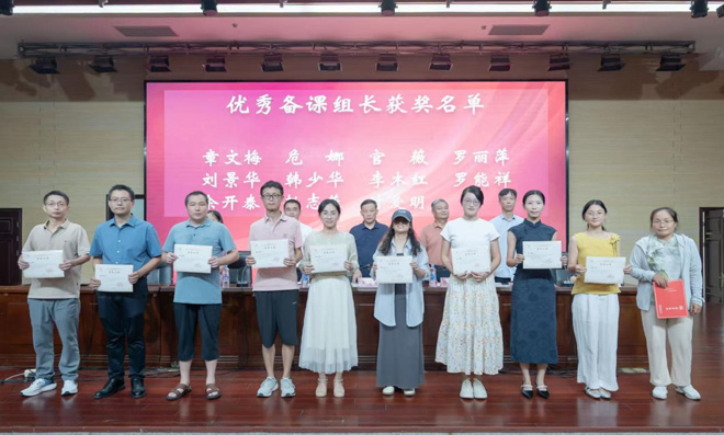 --会议开始,校领导为上一学期获奖的优秀备课组组长颁发奖状。备课组组长们深耕教学,团结组员,辛勤付出,卓越引领,是学校教学质量得以不断提升的基石。