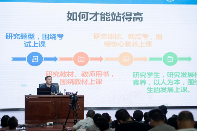 --黄校长指出,加强学科建设是推动学校高质量发展的必由之路,学校将从学科定位、学科队伍、学习氛围、教学态势、资源保障等方面加强初高中学科建设,并根据学校高考各学科数据分析,诊断教学现状,制定清晰目标,从规划与定位、队伍建设、教学与教研、资源整合、品牌塑造、目标达成六个步骤,具体阐释了学科建设的实施路径,为参会教师清晰地勾勒了学校学科建设的蓝图。