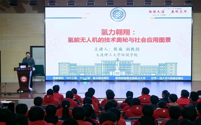 --为拓宽学生科技视野,点燃青少年科学探索热情,践行“大理想,小习惯”育人模式理念,12月4日晚,临川二中特邀“985”“211”高校大连理工大学环境学院熊巍副教授,为310名怀揣“科学家”梦想的高中学生带来了一场主题为“氢力翱翔:氢能无人机的技术奥秘与社会应用图景”的前沿科技讲座。