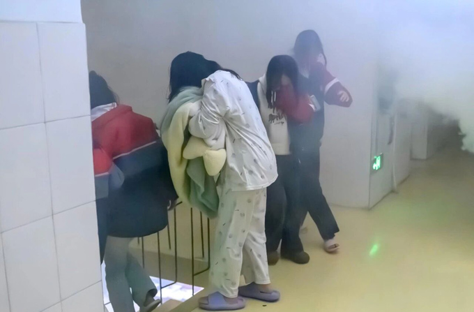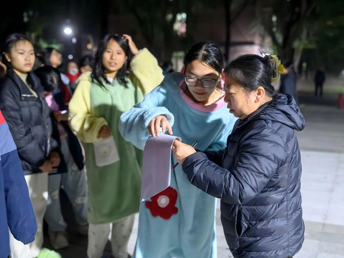--为增强模拟情境的真实性与紧迫感,学校特意选择学生深夜就寝时段开展演练。撤离过程中,一幕幕真实场景生动再现:有的学生从睡梦中惊醒,拎起衣物迅速外跑;有的放下手中书本,毫不犹豫撤离现场;还有个别腿脚不便需拄杖行走的男同学,被同寝室同学毫不犹豫背起一同撤离,上演了温情动人的一幕。