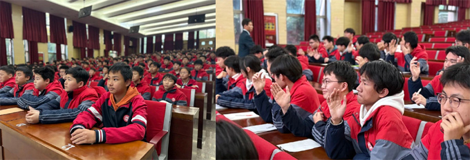 --压轴环节,教员们以“青春航道:新时代青少年的担当与作为”与同学们交流,结合国际形势与国防需求,鼓励同学们:“立鸿鹄之志,强健康之体,增学识之才,养国防之情”。这一观点契合学校“大理想小习惯”育人模式,让同学们领悟小习惯成就大理想的意义,引发强烈共鸣,结束时现场掌声不息。更有一对双胞胎同学在讲座结束后拉着教员们做深入交流,久久不愿散去。