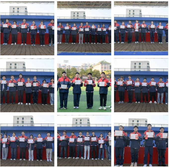 --下午第七、八节课,运动场上气氛庄重热烈。在激昂的进行曲中,表彰环节有序展开。校领导班子成员先后宣读进步奖、三等奖、二等奖、一等奖及省科技运动会一等奖获奖名单并依次为获奖学生代表颁奖,掌声此起彼伏,荣誉与喜悦洋溢全场。特别值得一提的是,在江西省第二届青少年学生科技运动会中,我校三位学子勇夺科学调研报告赛高中组一等奖,包揽抚州市全部一等奖,展现了学校“五育融合”的育人新成果。
