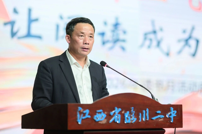 --黄校长在启动仪式致辞时指出经典阅读是涵养品格、坚定信念的重要途径,倡导师生在阅读中汲取精神力量、奔赴广阔未来,并表示持续开展读书月活动,有助于厚植校园文化、助力文明校园与文明城市建设。他提出要着力打造班级书屋,筑牢校园阅读根基,让阅读融入日常学习生活;同时针对初高中学生分别设计亲子共读、阅读之星评选、跨学科读书笔记征集、主持与创作类竞赛等丰富活动,为同学们搭建多元展示平台,全面提升阅读素养。他还倡议全体教师坚持阅读研习,将读书与教学实践、育人工作相结合,不断提升专业能力与育人水平;呼吁家长积极参与亲子阅读,让书香浸润家庭,形成家校共育合力。黄校长寄语广大师生与家长,以阅读滋养心灵、以正气涵养人生,在书香相伴中共同成长。至此,临川二中2026年读书月活动正式拉开序幕、全面启动。