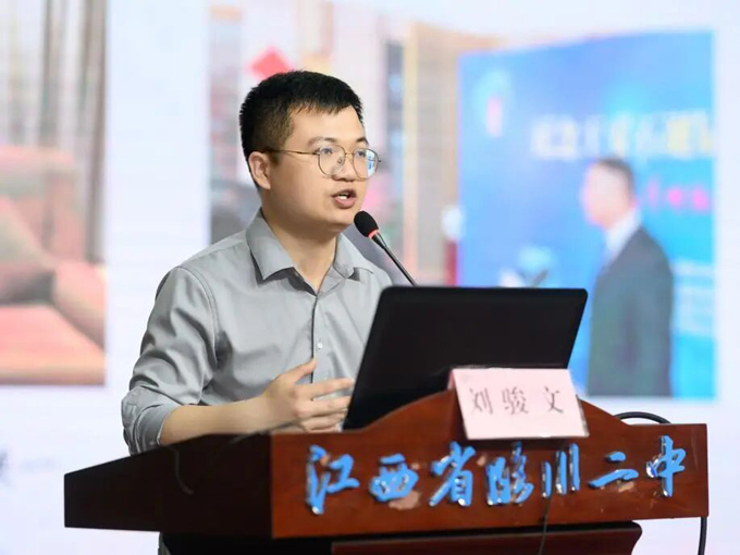 --讲座伊始,政教处主任黎良麟代表学校对刘骏文校友的归来表示热烈欢迎与衷心感谢,并向在场同学介绍了刘骏文校友的成长历程与文学成就。作为临川二中2013届校友、原临川二中才乡文学社社长,刘骏文笔名流马,深耕文学创作多年,出版《早安,低分贝的人》《你要相信世界没有腐朽》等散文集,作品刊发于《诗刊》《星星》《诗歌月刊》等权威文学期刊,荣获江西省委宣传部“优秀共产党员”、抚州青年五四奖章等多项荣誉,事迹被中央电视台、中国作家网等数十家媒体报道,是从才乡沃土走出的杰出青年榜样。