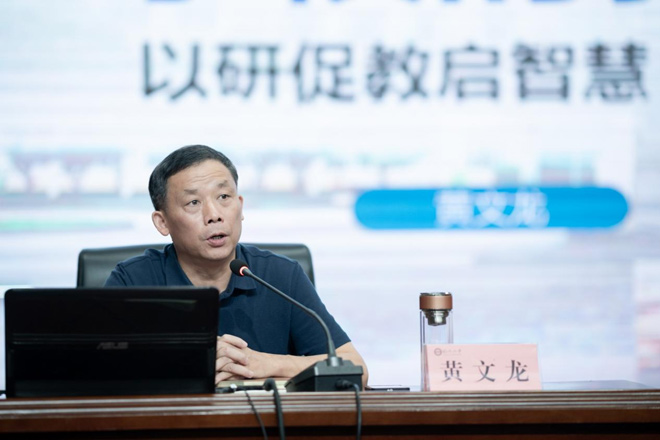 --在新时代教育背景下,如何以学科建设引领学校教育科研工作?会上,黄文龙校长围绕“用学科建设的思想统领学校的教育科研”主题,开设了精彩讲座。