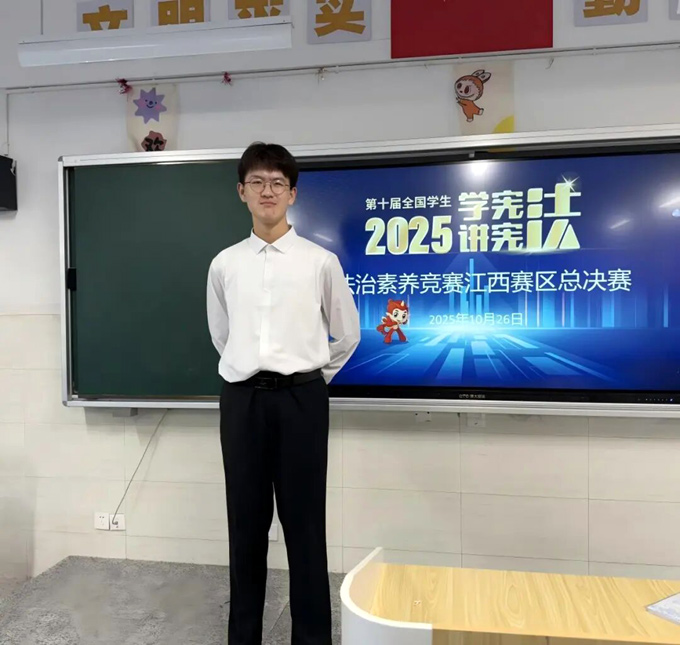 ——法治是成长的基石,更是前行的力量。首先,衷心祝愿黄振一同学在全国总决赛的舞台上再接再厉,勇攀高峰,充分展现抚州学子的卓越风采,为家乡、为江西斩获更多荣誉!同时,希望全校学子以黄振一、王思颖同学为榜样,主动深耕宪法知识,自觉增强法治观念,将法治精神内化于心、外化于行,努力成长为尊法学法守法用法的新时代好少年。