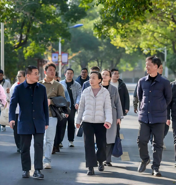--下午2时30分,来宾抵达我校。双方于办公楼前亲切合影留念。随后,来宾在黄卫民副校长的陪同下参观校园,重点走访了校史馆。馆内丰富的史料与办学成果展示,生动呈现了我校的发展历程与教育理念,引发了双方关于学校文化传承与人才培养的共鸣。