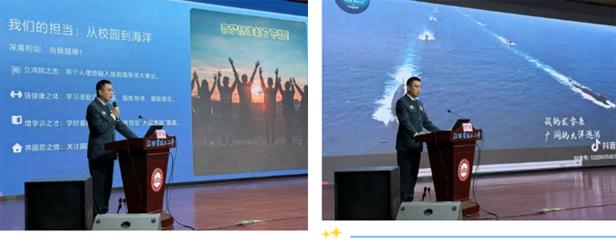 --随后,王广大教员围绕“砺剑深海:潜艇技术的跨越与发展”,用通俗语言解析潜艇核心技术与迭代脉络,从动力革新到装备升级,兼具专业与趣味,既满足同学们的探索欲,也让大家直观感受我国国防科技的迅猛发展,激发投身国防的抱负。
