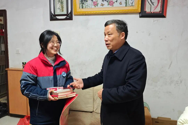 --这不仅是一场常态化的家校共育实践,更是临川二中落实立德树人根本任务的生动体现。校党委书记、校长黄文龙利用节假日、寒暑假深入学生家庭进行家访。2026年2月8日至9日,黄校长带领年级主任和班主任深入高二年级、高三年级部分学生家中走访,为孩子们送上满怀期许的书籍、文具以及新年压岁红包。一份份关爱、一声声鼓励,温暖着学子的心田,彰显了二中人“立足真教育、办好大教育”的责任与担当。