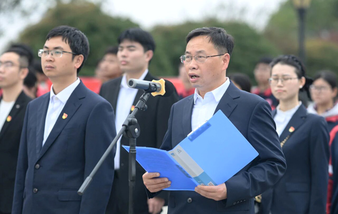--为保障活动顺利开展,学校提前统筹部署,各小组分工明确、通力协作,完成场地对接、物资准备、流程彩排、纪律教育等各项工作。参与教师着正装,佩戴党徽,学生着校服,全程严守现场秩序,展现了临川二中学子的良好风貌。