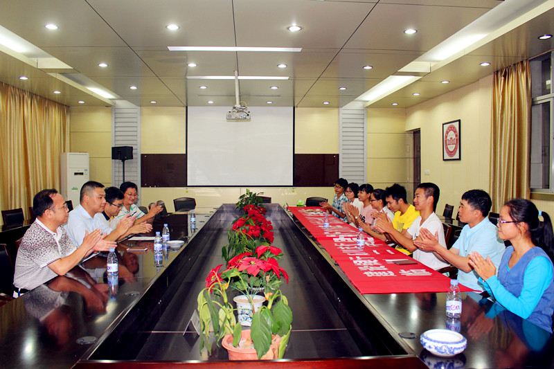 参会领导左起:余小昌副主任、张楠经理、吴向军书记、刘保华副校长