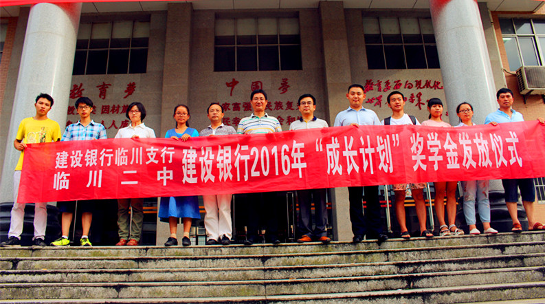 “成长计划”奖学金由中国建设银行出资设立,实施“建设未来——中国建设银行资助贫困高中生成长计划”,专项资助全国,特别是中西部地区普通高中家庭经济困难学生。经过甄选,我校付娇娇、刘旺敏、范雨婷、杨勇、方乐、邹志聪、尧欢金、胡紫灿等8名学生每人获得3000元奖学金。