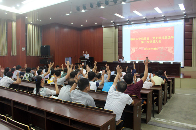9月11日,临川二中在新校区办公楼六楼多功能会议室召开了临川二中党总支、党支部换届选举第一次党员大会。第一党支部(理科)、第二党支部(文科)共计160多名党员参加了大会。
